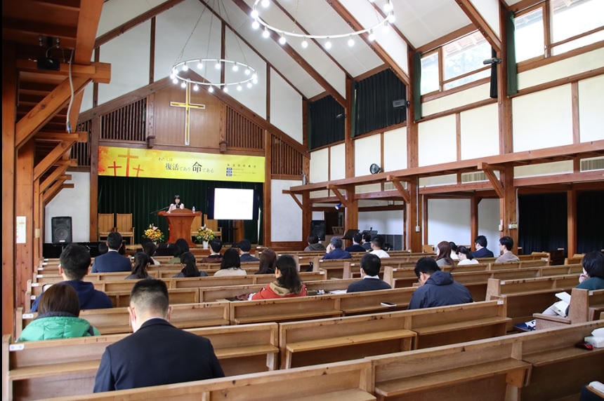 4月7日から9日まで、ヨハネの福音書11章25節『わたしは復活であり命である』をテーマ聖句に、復活祭修養会を開催しました。 日本各地から約110人が参加し復活祭礼拝と洗礼式以外にも聖書講座や祈祷会、賛美集会が行われ、イエス・キリストの復活を祝いました。
